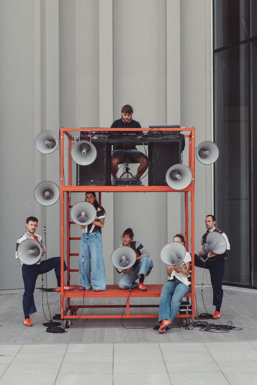 Bozgorailuek—megafoniakoak, musika eta ahotsa indartzeko bezainbeste, kolektibotasuna eta ospakizuna zabaltzeko tresna direnak—joko-esparru bizidun bihurtzen dira. Dantzarien eskuetan, espazioa zeharkatu eta unea partekatzeko gonbite bihurtzen dira.